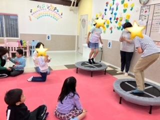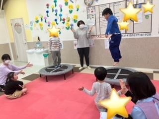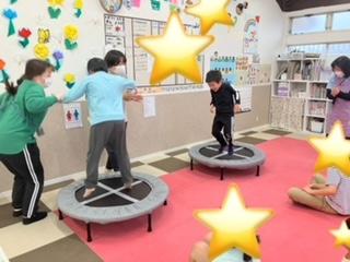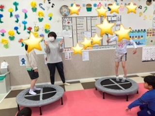 ストレッチ組とトランポリン組に分かれて活動しました!