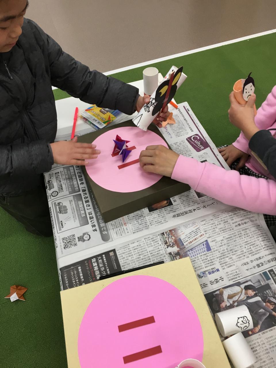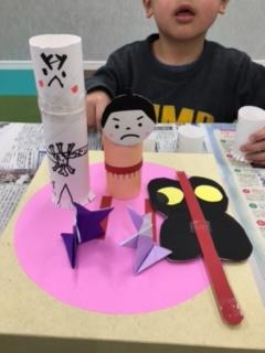 土俵はお菓子の空箱で力士はトイレペーパーの芯で作りました!みんな強い力士を作るために大きさを工夫したり足元を工夫したり‼︎立派な横綱ができたかな⁇☆