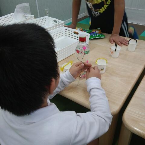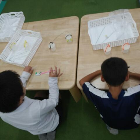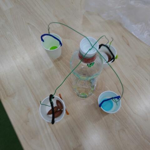 今日は工作のプログラム、紙コップや針金を使い、やじろべえを作りました!