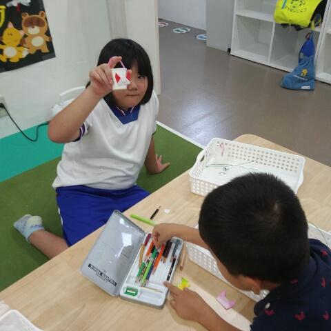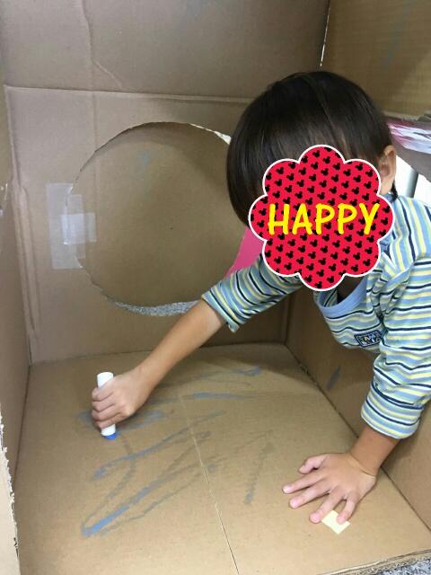 自由時間には大きな段ボールのおうちをペンなどで飾りつけ★