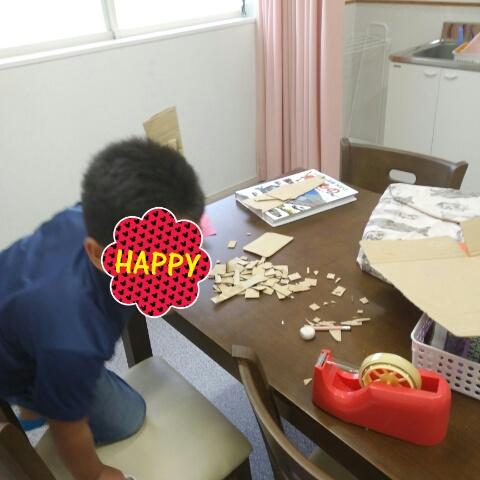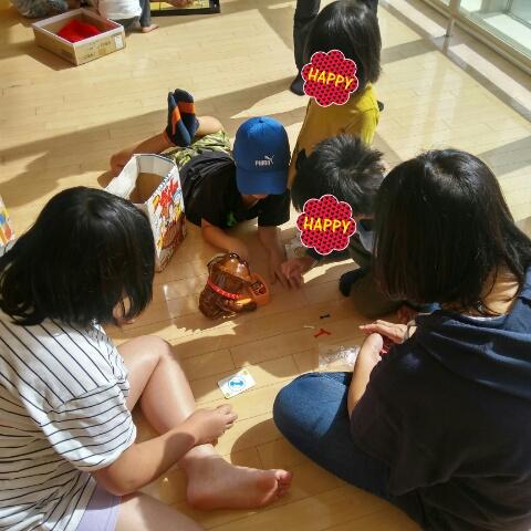 段ボールのポテト作りでは、年上のお兄さんもお手伝い(*^^*)