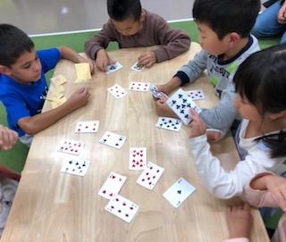 開いたトランプの数字で計算したり…