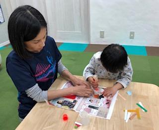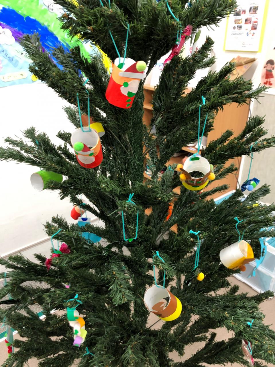 どんぐりとカラーセロハンでキャンディーを作ったり、トイレペーパーの芯を利用して、サンタさんやトナカイを作りました‼︎
