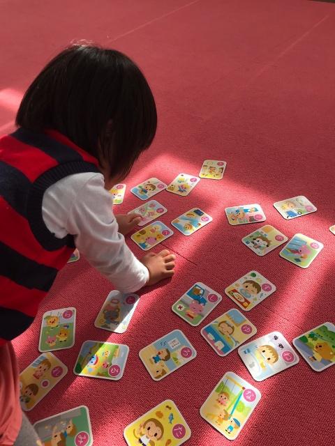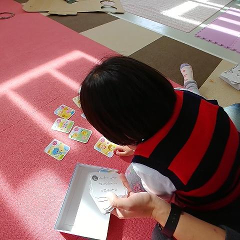 今日のプログラムは、文字や絵をよ~く見たり、先生の声に耳を傾けるのを目的にカルタをやりました♪