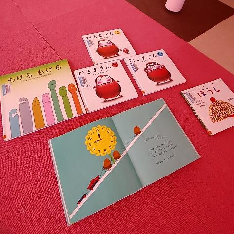 擬音が楽しい、だるまさんシリーズやもけらもけらの絵本、時計の絵本等いっぱいある中から、好きなものを選びました♪