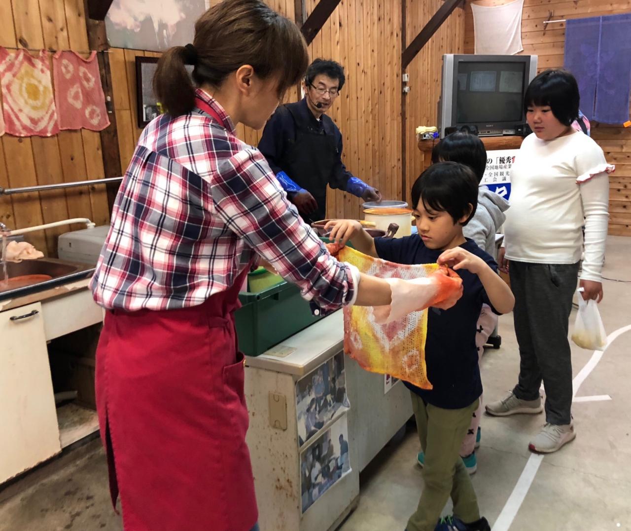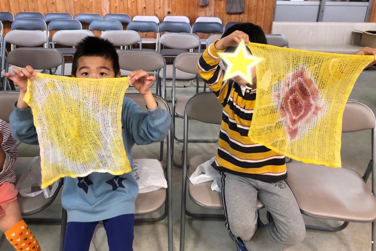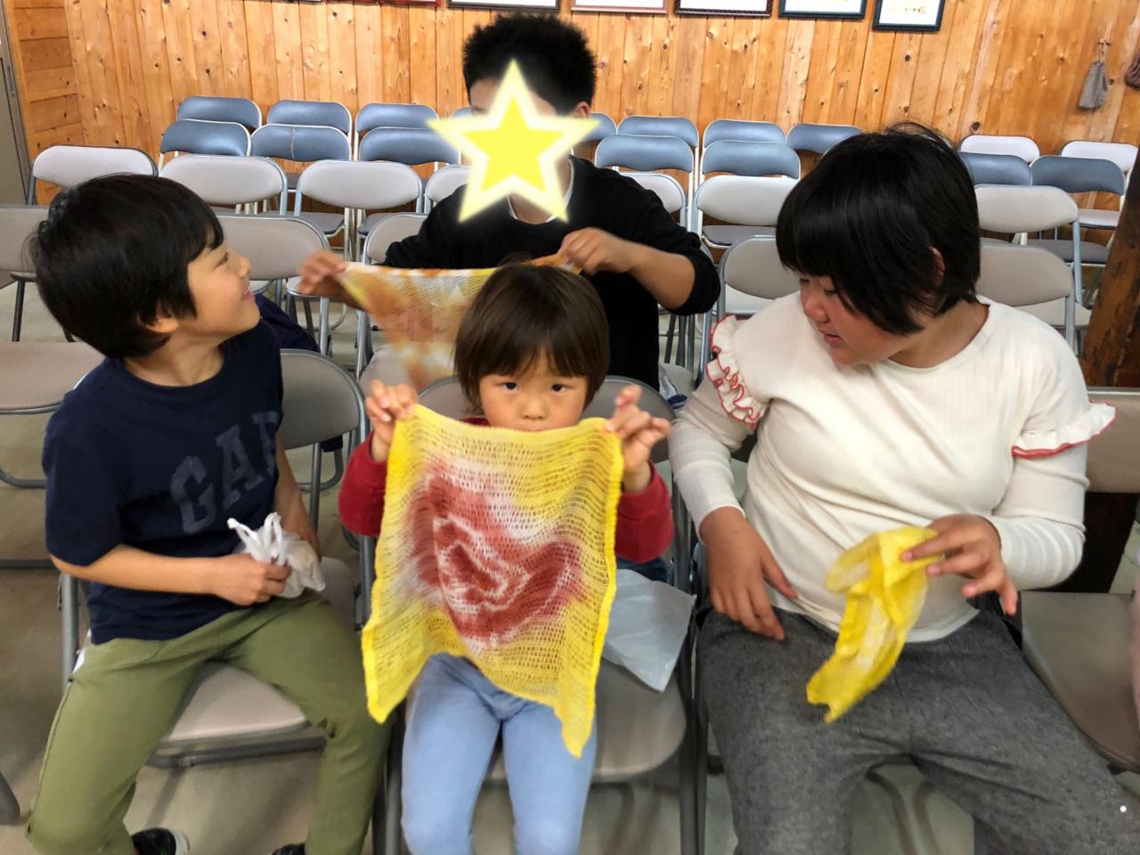 色染めは、黄色、オレンジ、ピンクから選んで染めました!