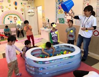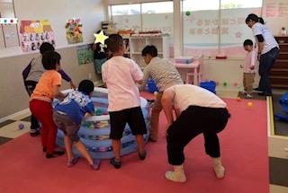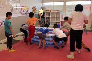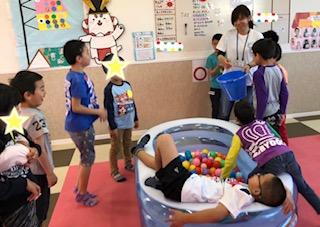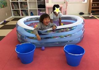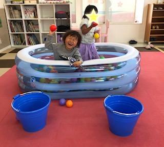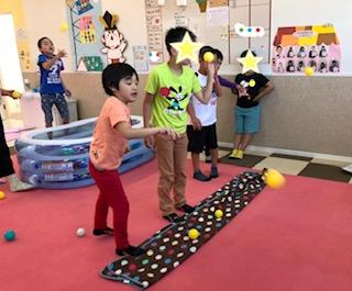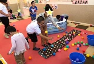 玉入れでは、バケツにむかって、「それ〜」入ったボールの数をかぞえたり、入ったボールの色は何色かを確認しました‼︎