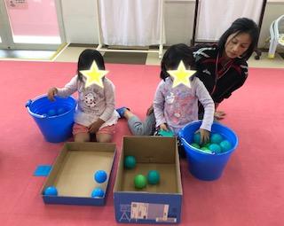 本日のさくらっこたいむは、カラーボールで色合わせ、数合わせ‼︎