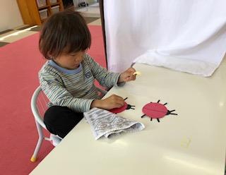 本日のさくらっこたいむでは、のりで貼る、シールで貼るを組み合わせて、「てんとう虫」の完成〜‼︎