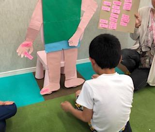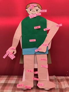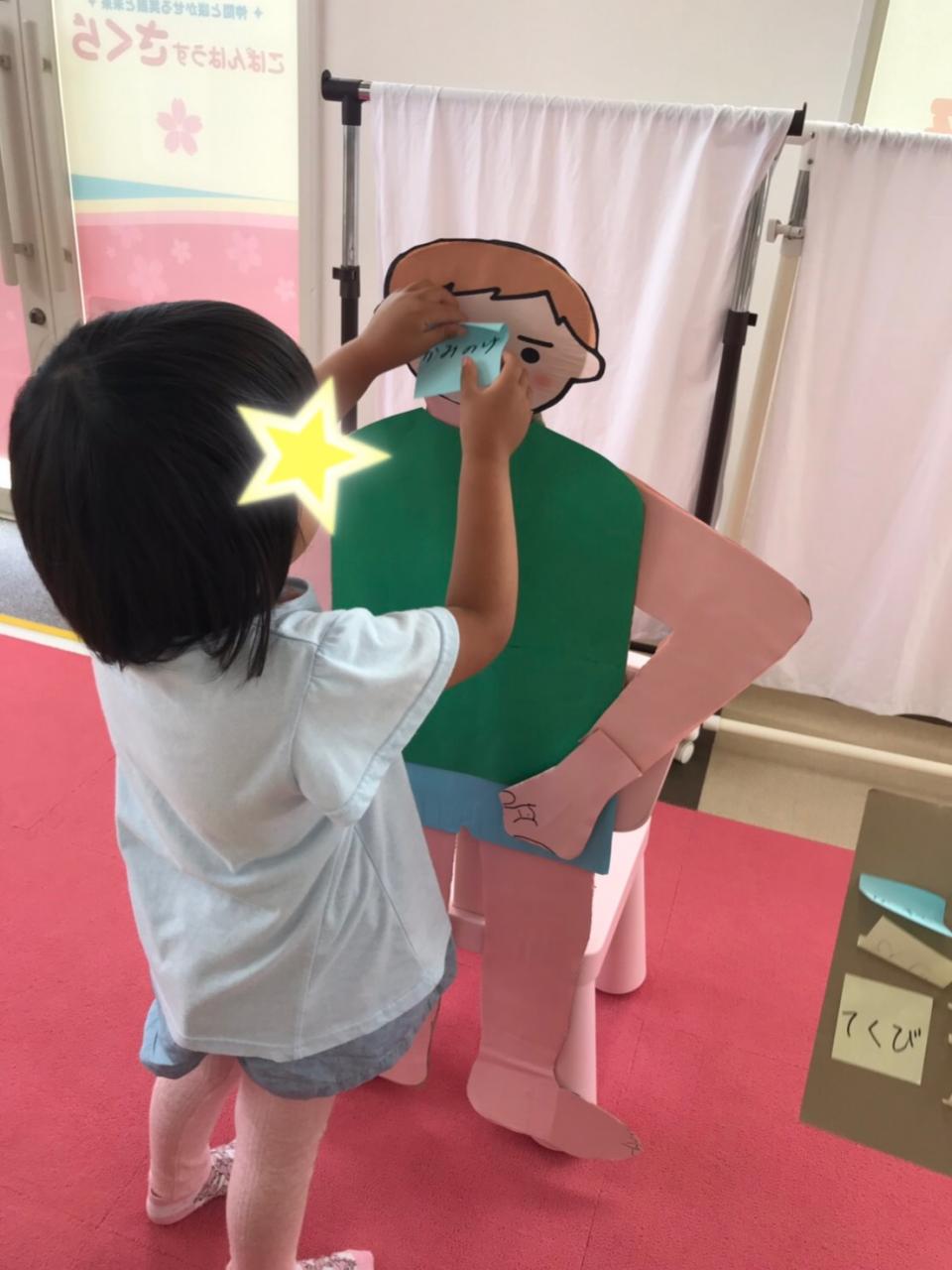 いろいろなからだの名前をみんなで場所も確認しながら、名前をペタリ‼︎