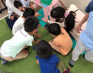 今日は、バケツ詰め込みリレーとドミノで街づくりを行いました‼︎