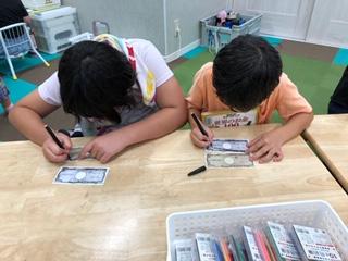 お金の本でいろいろな種類のお金を鑑賞したら、自分のお金を作ってみました!