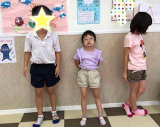 地震訓練では、地震がきたら、「背中ぴったん忍者」が貼ってある壁に背中ぴったんする訓練を行いました‼︎