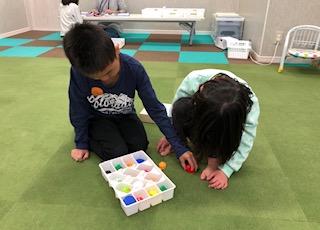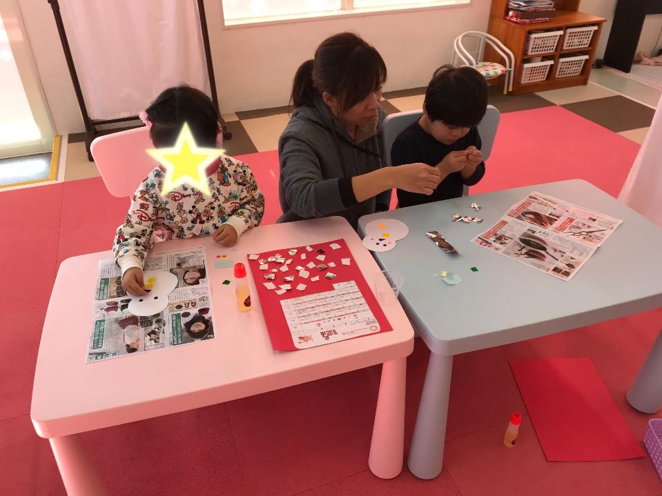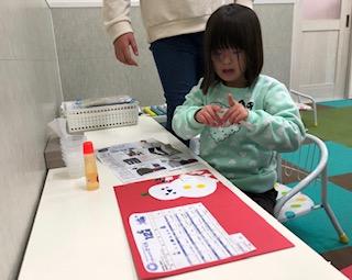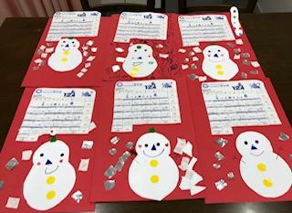 12月のイメージで雪だるまを作りました!折り紙をちぎったり、シールを貼ったりしました。