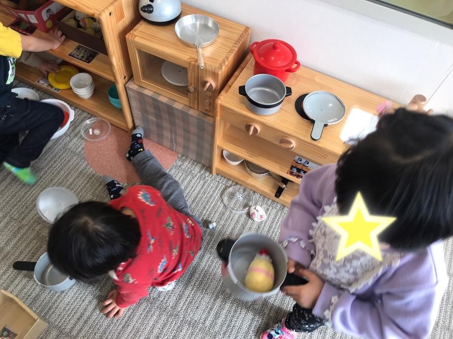 にこっとでは、人形で遊んだり、おままごとをして遊びました♪