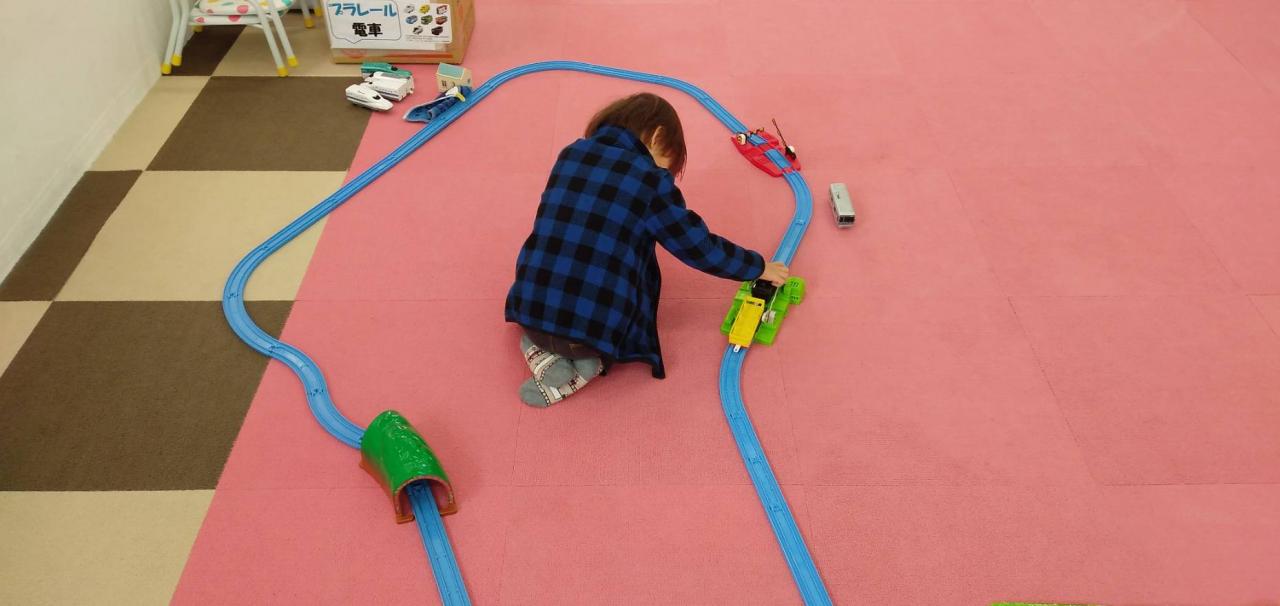 自由時間はプラレール♪長〜い線路が作れたね!電車もたくさん走らせて、楽しかったね(^ ^)