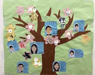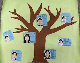 スタッフのプロフィールの木に、みんなが書いてくれたプロフィールのお花が咲いて賑やかな、ふわふわの木が完成しました‼︎