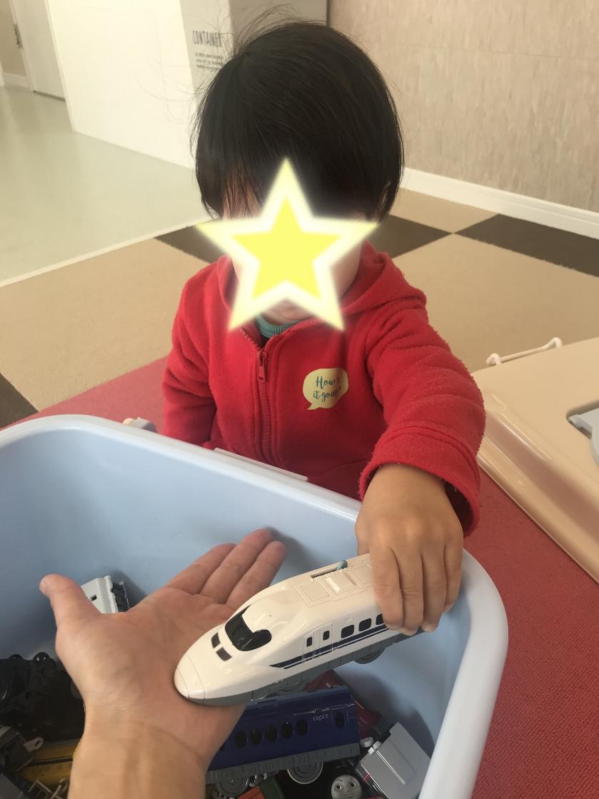 最後は電車を片付けながら、「ちょうだい」「どうぞ」のまねっこ!!上手に出来ました☆