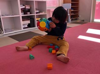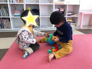 最後は電車を片付けながら、「ちょうだい」「どうぞ」のまねっこ!!上手に出来ました☆