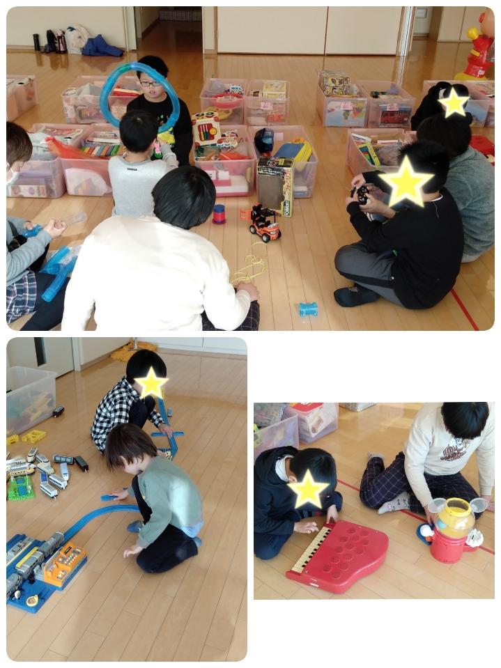 1つのおもちゃをみんなで協力して組み立て遊んだり、「貸して」とちゃんと伝えたり、使い終わったら片付けも頑張りました☆