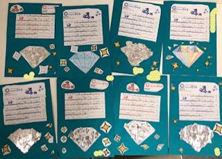 自分たちでイメージしたダイヤモンドを折り紙で貼り絵したり、色鉛筆でぬったり、素敵なダイヤモンドが完成しました☆