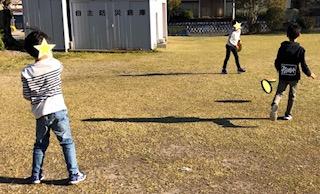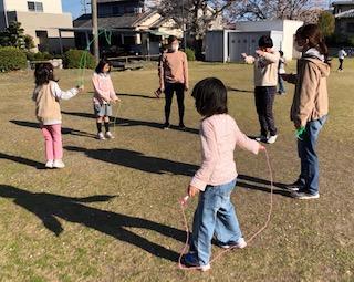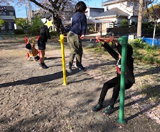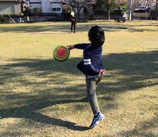 グループごとに3つのテーマ①鉄棒②なわとび③ドッチビーに取り組みますが、ホイッスルが鳴ったら次のテーマ、ホイッスルが鳴ったら次のテーマと大移動します!