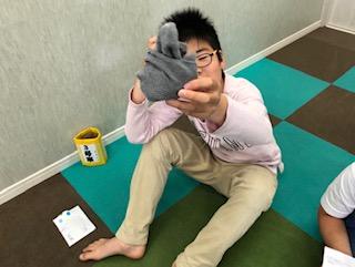 測定開始前に靴下の畳み方を練習しました!
