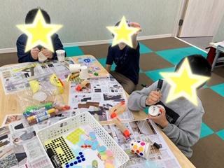 本日、工作プログラム、「竹トンボ作り」では、牛乳パック、ストロー、セロハンテープを利用して制作しました!