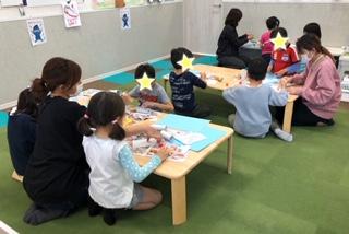 思い思いに絵や折り紙を工夫して賑やかな鯉のぼりが泳ぐ空になりました(^^)