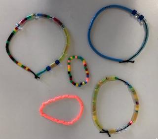 本日、工作プログラム、「ビーズでアクセサリー作り」では、ブレスレットとネックレスを制作しました!