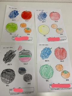 秋の果物のぬりえをしました。