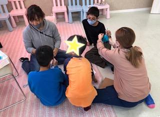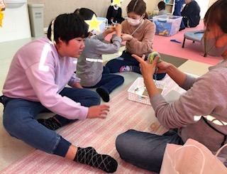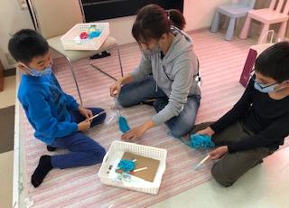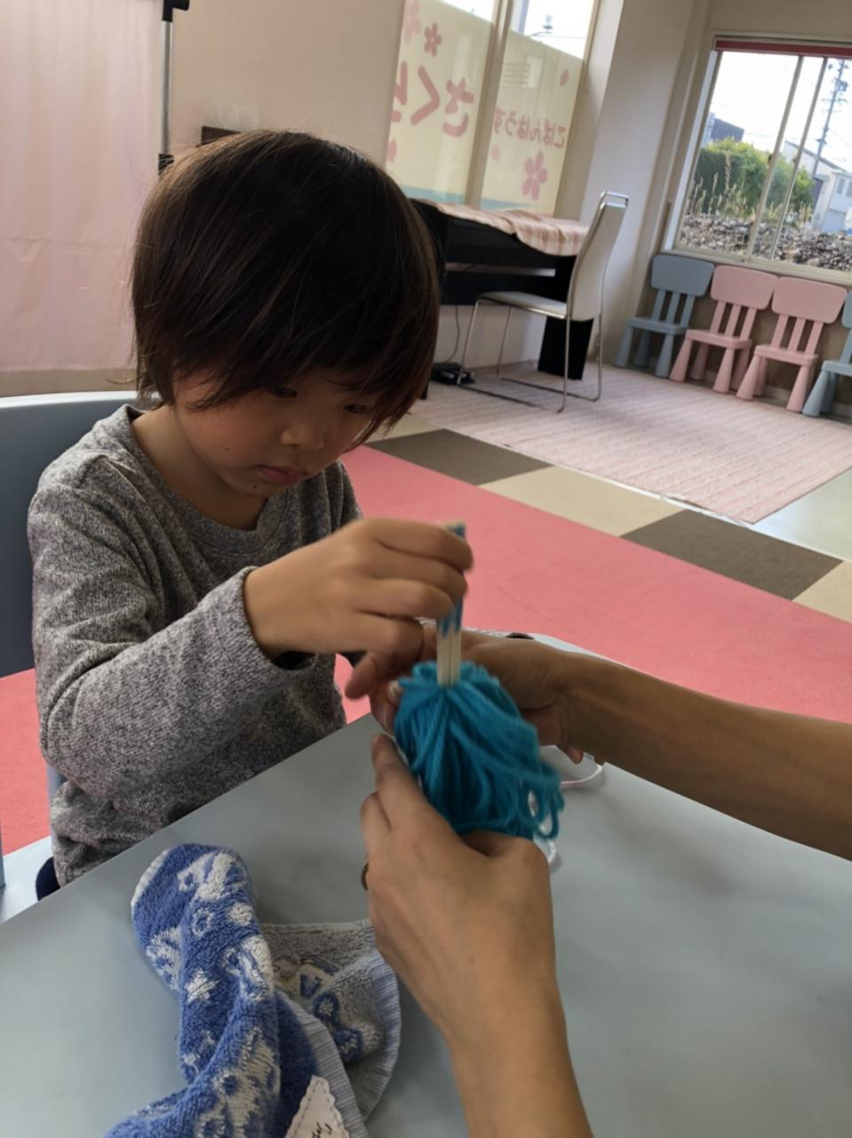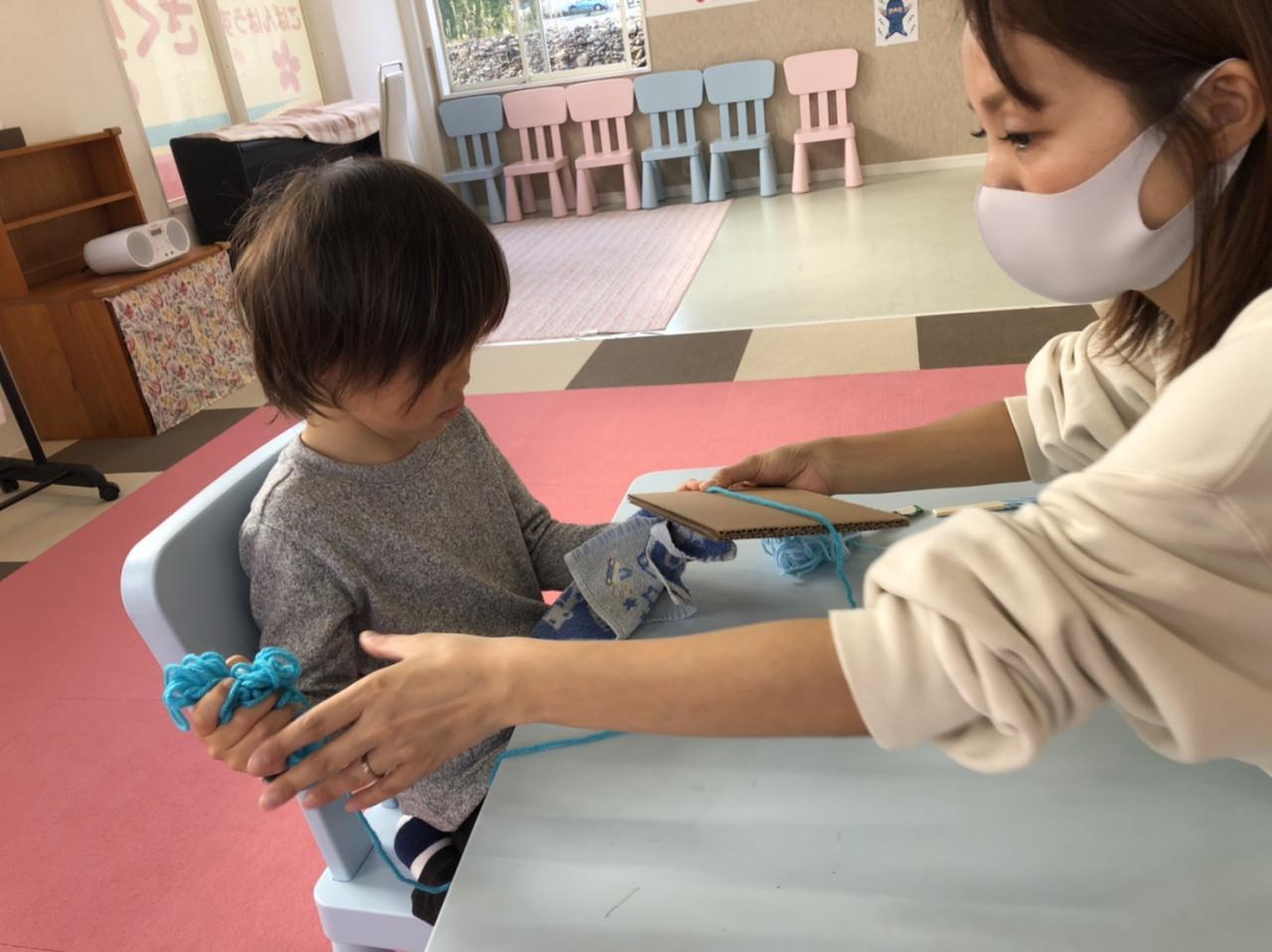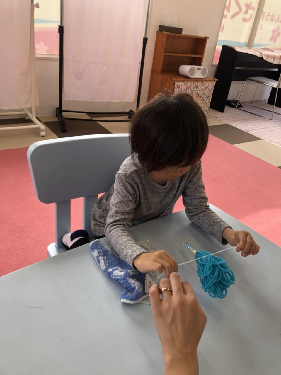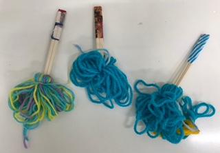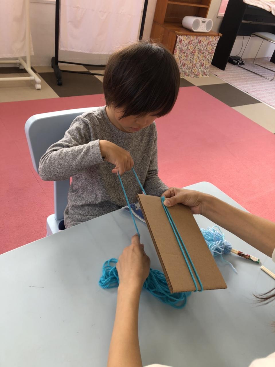 毛糸、輪ゴム、割りばしを利用して取り組みました!