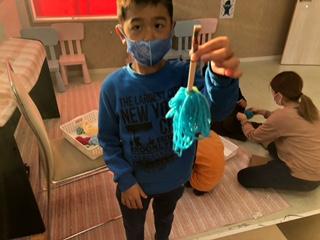 完成したミニほうきを持って教室をお掃除する姿も見えました!