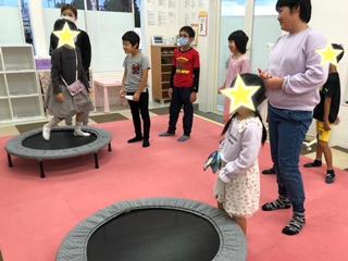 立ったり座ったりしてトランポリンの揺れを楽しめたね!