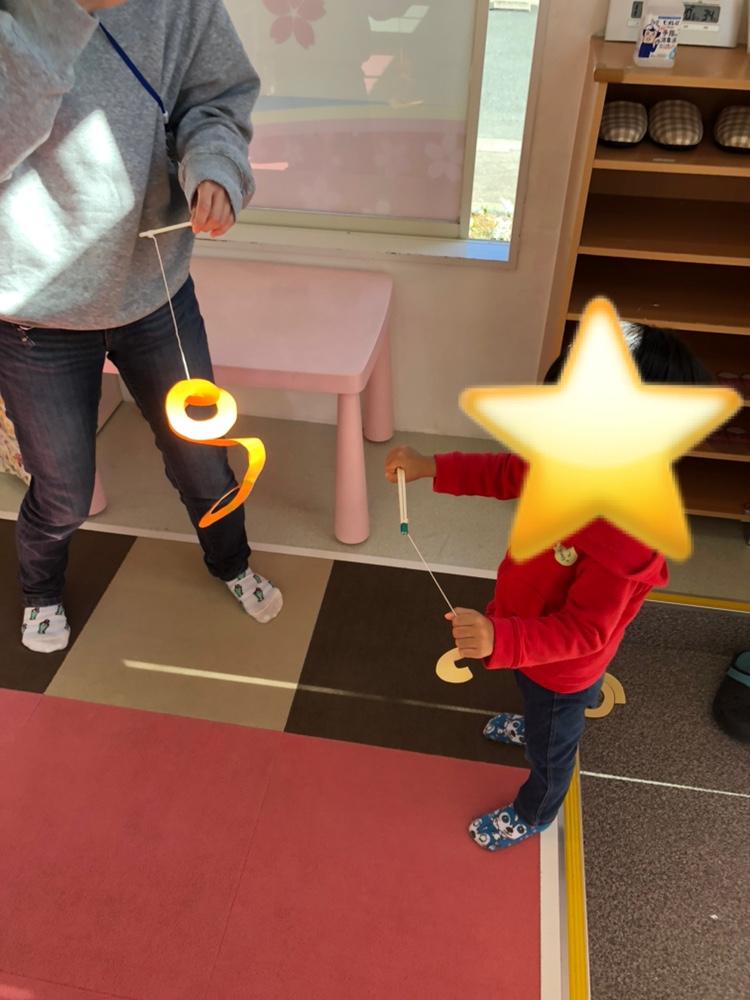 音楽が鳴っている間、お手本以外のお友だちは歩き回ります!