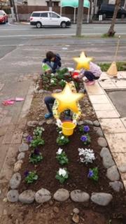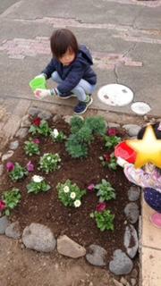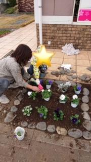 花壇にお花も植えました^^