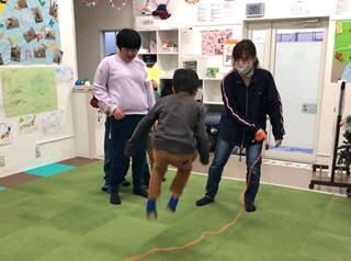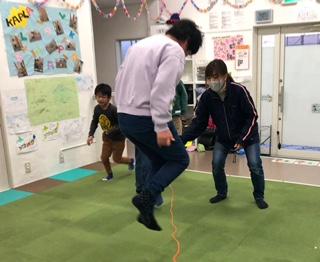 ヘビに見立てた縄跳びを大きくジャーンプ♪