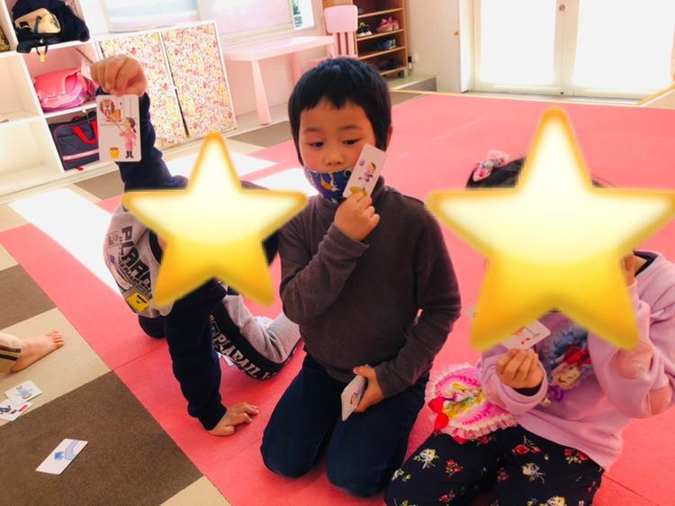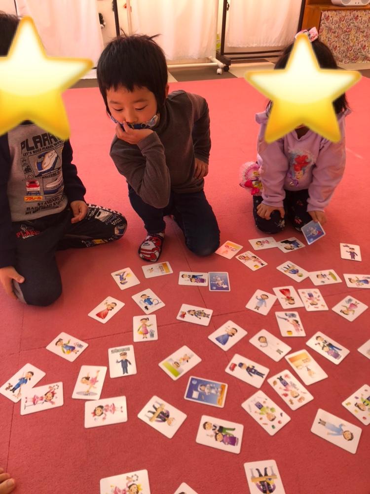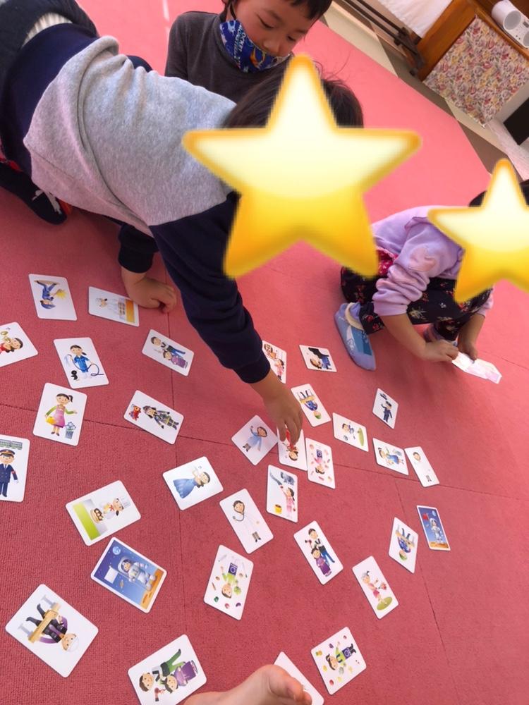 自分の手持ちカード(絵カード)をお友だちに当ててもらうために次々ヒントを出していきます!