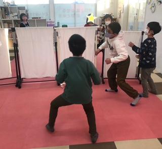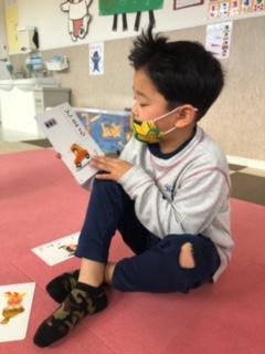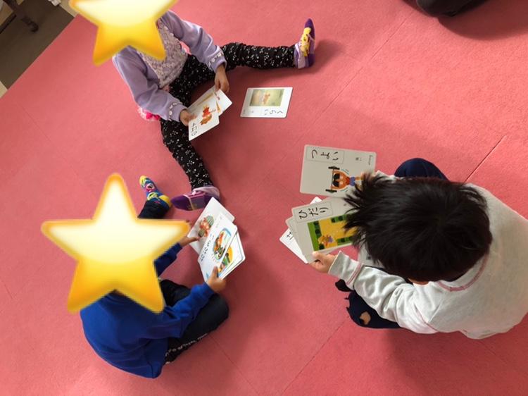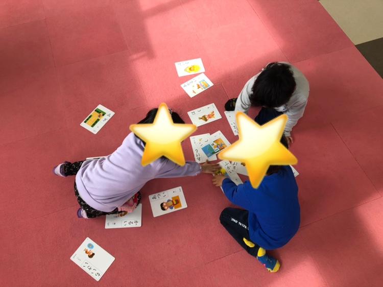 名前が呼ばれたら、先生が言ったカードを取って、反対の言葉を言ってね(๑´ `๑)
