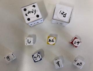 サイコロに貼ってあるテーマシールをヒントに山の手線式ゲームスタート!