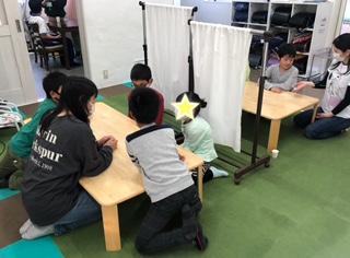 ひとりひとり違った色のセロファンを使い