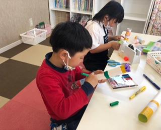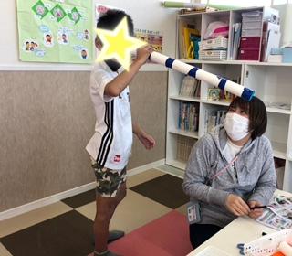 本日、工作プログラム、「双眼鏡作り」では、トイレットペーパーの芯、カラーセロハンを利用して制作しました!