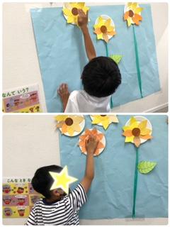 放デイ☆ひまわりいっぱい壁面作り 7月9日