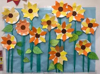 完成したひまわりが一つ一つキラキラしていて教室がぱーっと明るくなりました!