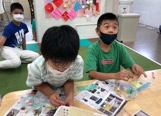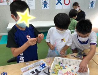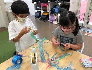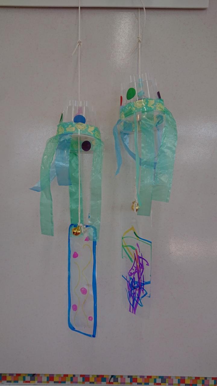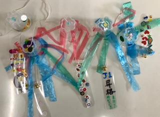 本日、工作プログラム、「風鈴作り」では、プリンカップ、鈴、凧糸を利用して制作しました!