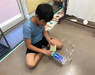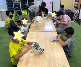 本日、工作プログラムでは、牛乳パックを利用して水遊びに役立つシャワーを制作しました!