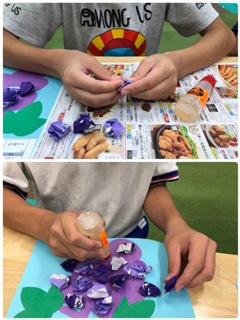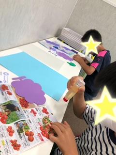 月初恒例プログラム、「カレンダー作り」では、秋の果物(ぶどう)をイメージして制作に取り組みました!