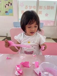 紙をちぎってカップに入れて