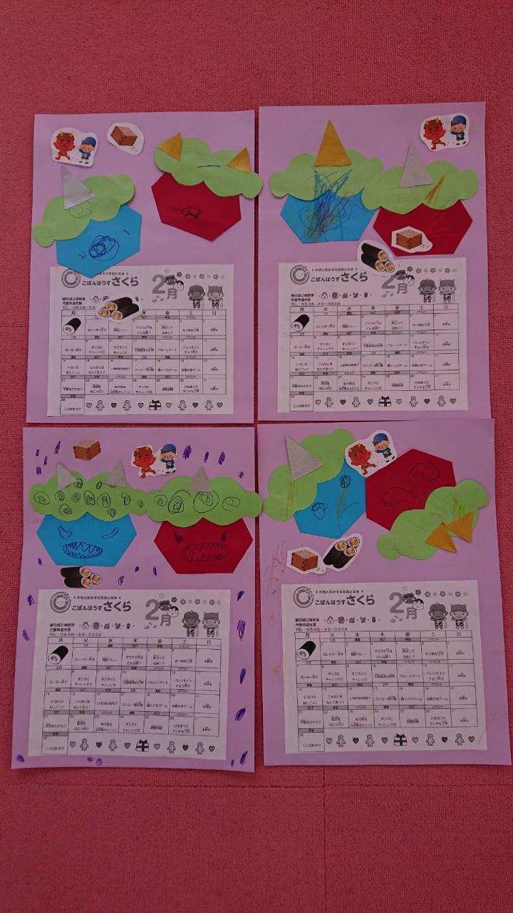 毎月恒例プログラム♪今月のカレンダーは、あか鬼とあお鬼です^_^