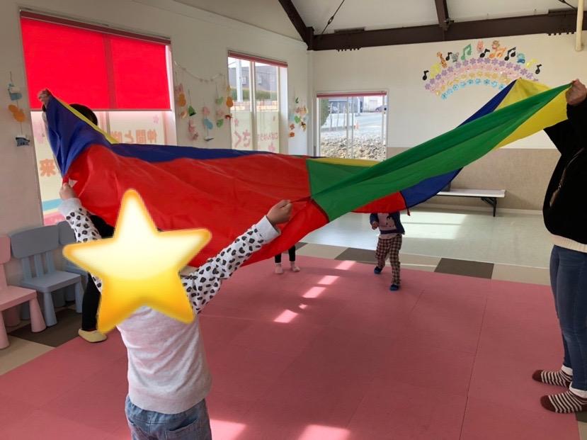 最後は、パラバルーンの中にみんなで入って遊びました☆とってもいい笑顔でした^^
